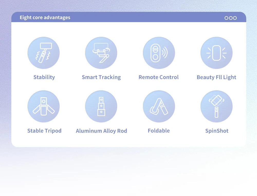 - La télécommande Bluetooth et le suivi intelligent du visage facilitent la capture de photos et vidéos à distance. Léger et portable, il est idéal pour les créateurs de contenu sur smartphone.