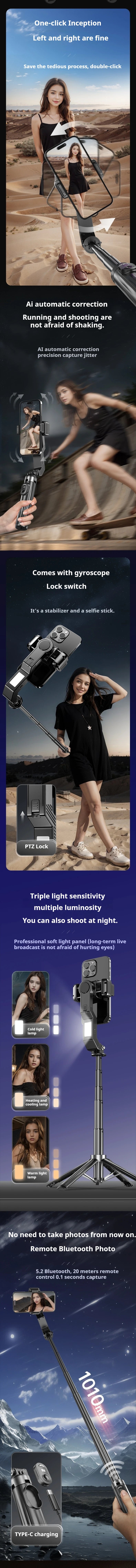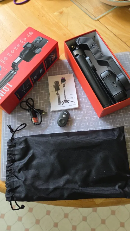 - Il combine stabilisation, perche à selfie, trépied et télécommande sans fil dans un design compact et léger.