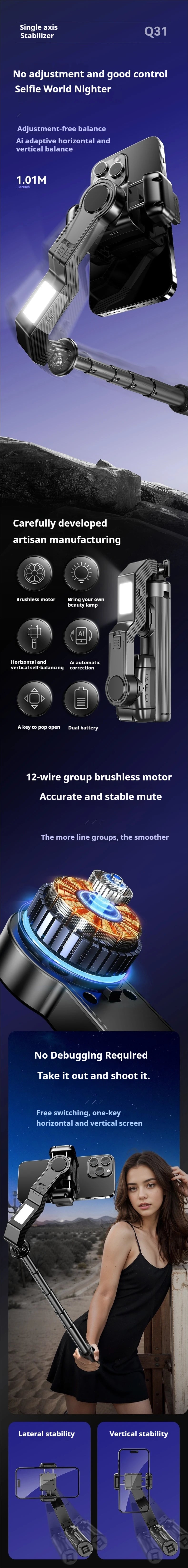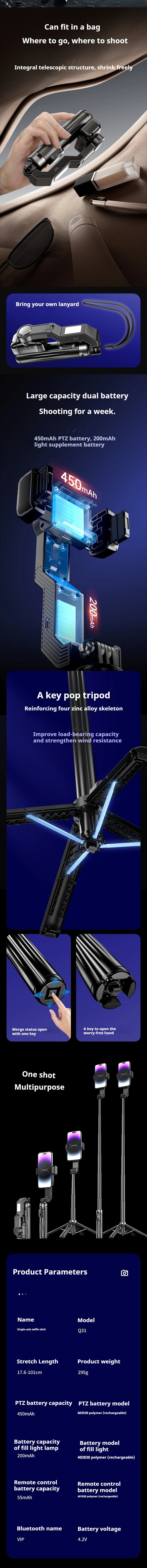 Stabilisateur Q31 – Stabilisateur de cadran portable pour smartphone, perche à selfie, trépied et télécommande sans fil